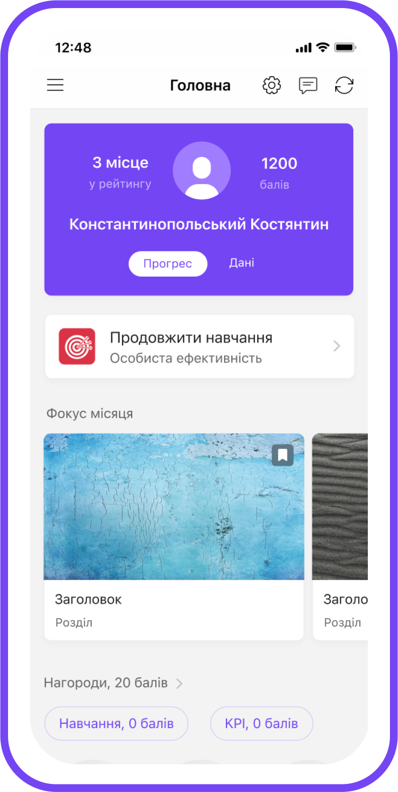 — Замість окремої LMS та СДН — Система мотивації та KPI всередині — Корпоративний портал — Чати керівника з командою у додатку — Можливість інтеграції з іншими вашими системами