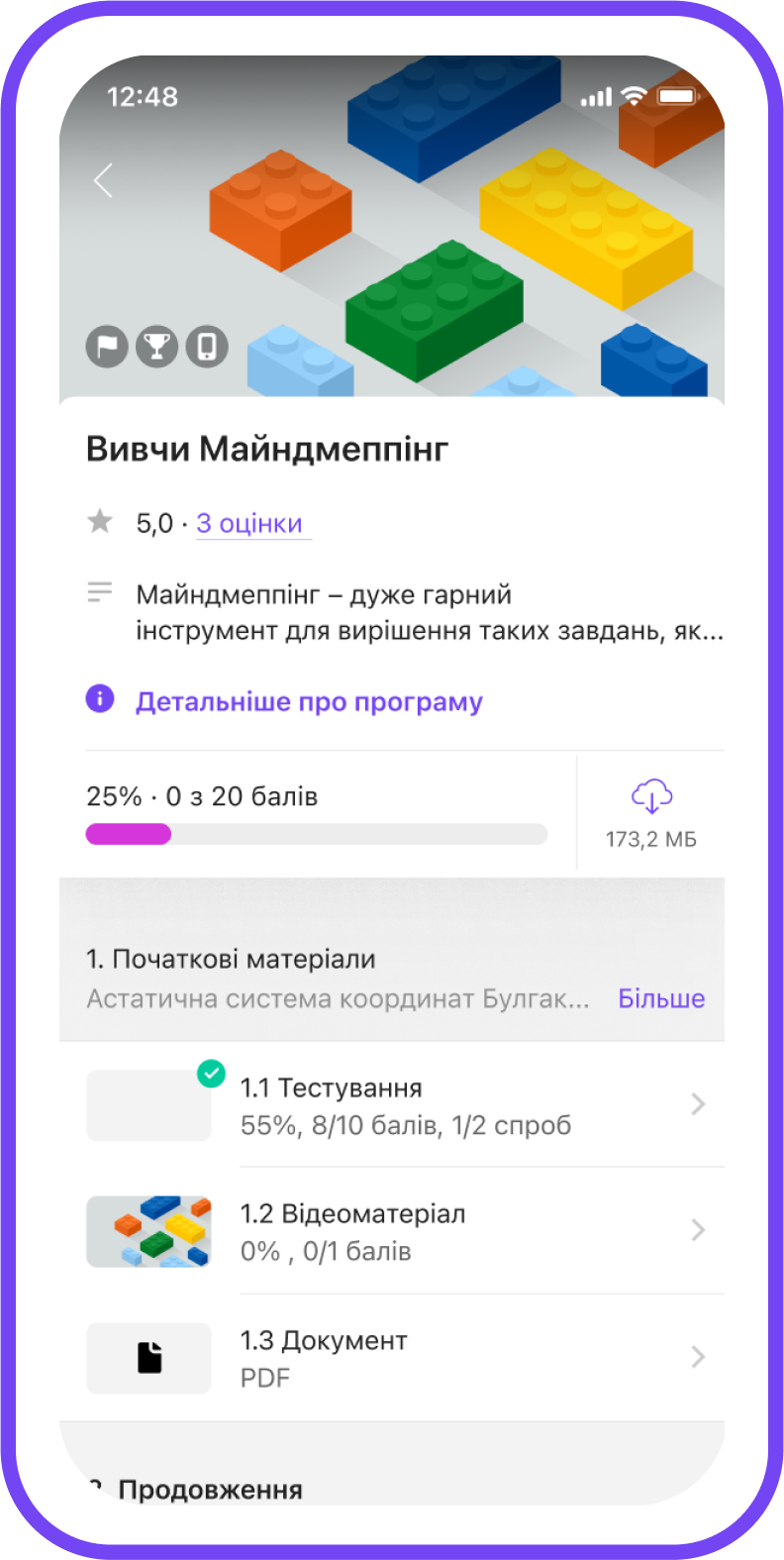 — Додаток для смартфона та планшета — Своя назва та окремі посилання в Appstore та Google Play — Повне брендування — Офлайн режим (можна вивчати без інтернету) — Підтримує старі пристрої — А також повнофункціональна веб-версія